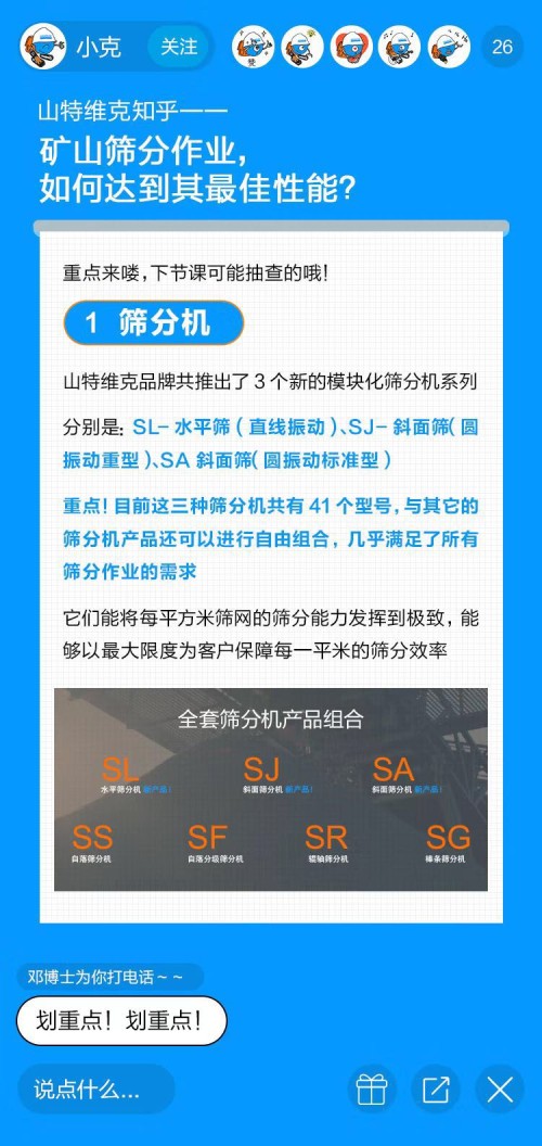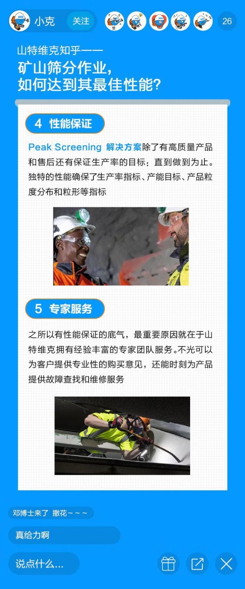 今天的直播課就請(qǐng)他,為大家講講礦山開采中一個(gè)重要環(huán)節(jié)——篩分。要知道篩分性能不佳會(huì)給開采商帶來不可預(yù)估的損失,比如成本的增加、利潤(rùn)的下降,那你知道如何解決礦山篩分作業(yè)中的痛點(diǎn),從而實(shí)現(xiàn)產(chǎn)能最大化么?今天我們就以山特維克Peaking Screening篩分解決方案為例,看看如何做到「越篩分之顛」!